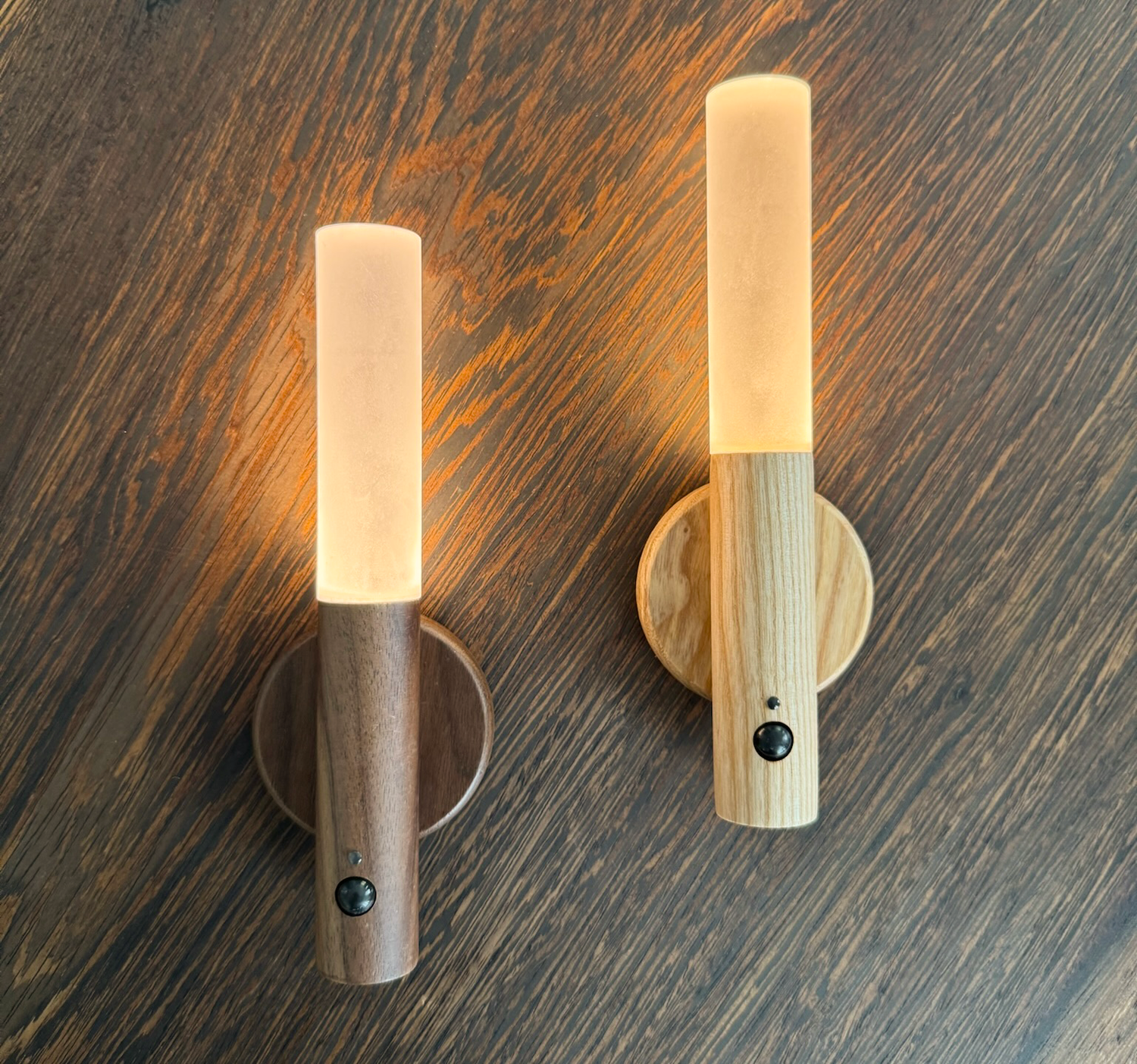 WoodGlow™ er håndlavet i nøje udvalgt valnød og bøgetræ. Magnetisk montering, trådløs frihed og justerbart lys gør den til dit nye yndlingsprodukt i hjemmet.